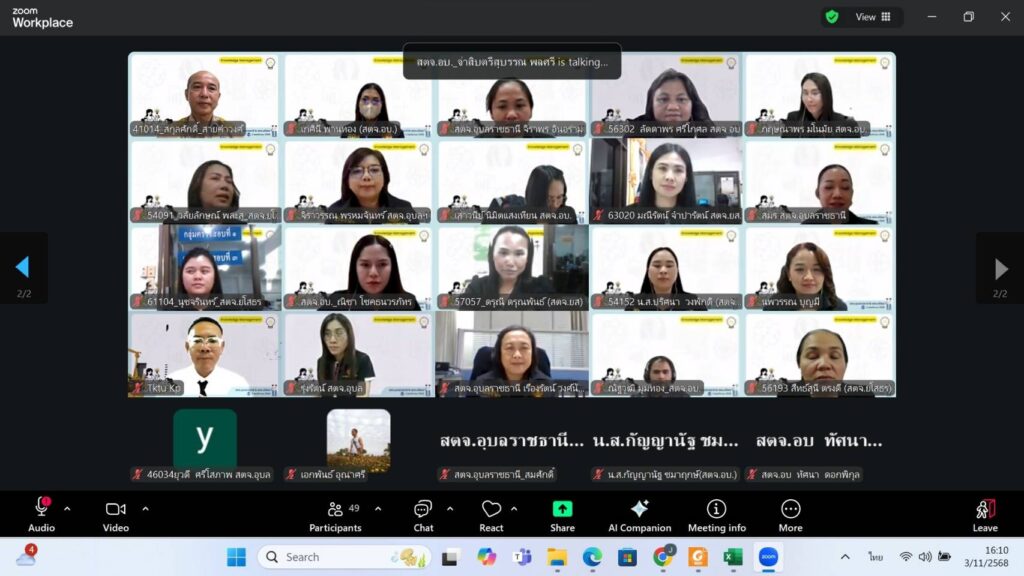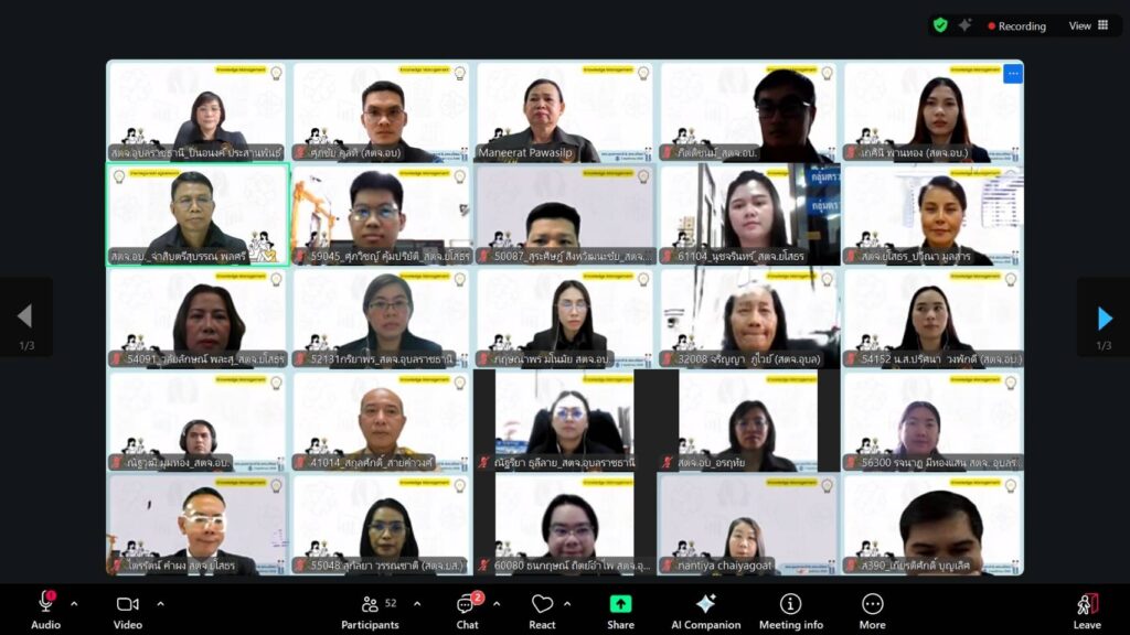 วันจันทร์ที่ 3 พ.ย. 68 สตจ.อุบลราชธานี โดยนางปิ่นอนงค์ ประสานพันธ์ ผู้อำนวยการสำนักฯ ร่วมกับ สตจ.ยโสธร โดยนายสกุลศักดิ์ สายคำวงศ์ ผู้อำนวยการสำนักฯ พร้อมด้วยข้าราชการและลูกจ้างในสังกัด จัดกิจกรรมโครงการจัดการความรู้ การตรวจสอบรายงานการเงินขององค์กรปกครองส่วนท้องถิ่น งวดปีงบประมาณ พ.ศ.2568 โดยได้รับเกียรติจากท่านผู้ตรวจมณีรัตน์ ภาวศิลป์ ผู้ตรวจเงินแผ่นดิน (สตภ.5) เป็นประธานในการเปิดโครงการฯ ออนไลน์ ผ่านระบบ Zoom Meeting