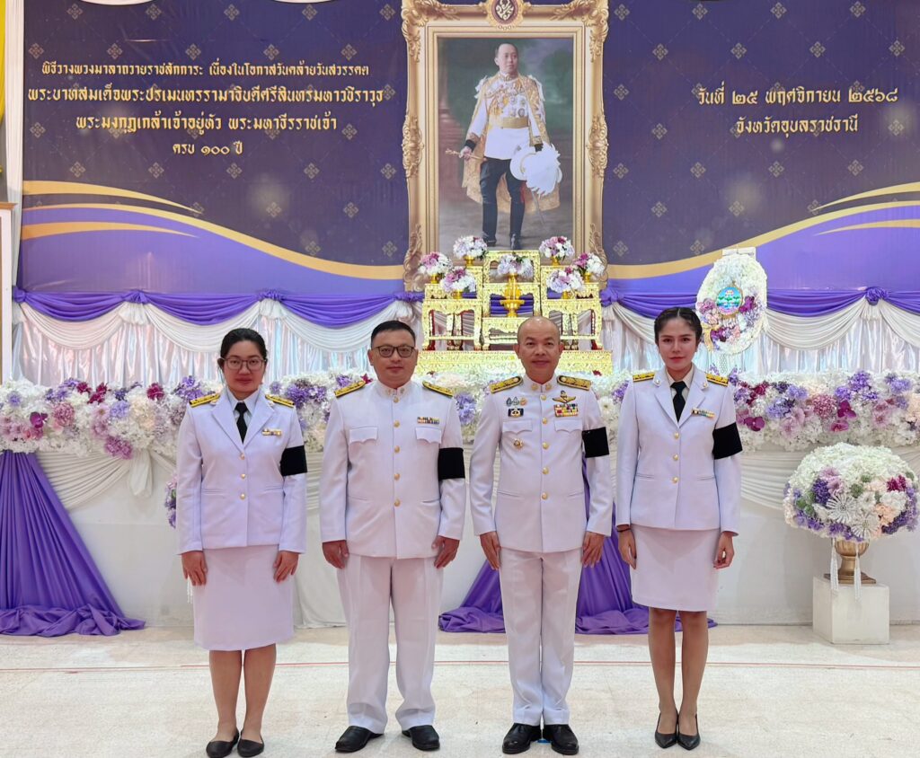 วันที่ 25 พฤศจิกายน 2568 เวลา 7.00 น. สำนักตรวจเงินแผ่นดินจังหวัดอุบลราชธานี โดยนายเด่นชัย กุคำใส นักวิชาการตรวจเงินแผ่นดินชำนาญการพิเศษ รักษาราชการแทน ผู้อำนวยการกลุ่ม พร้อมด้วยบุคลากรในสังกัด เข้าร่วมกิจกรรมเฉลิมพระเกียรติพระบาทสมเด็จพระมงกุฎเกล้าเจ้าอยู่หัว เนื่องในโอกาสวันคล้ายวันสวรรคตครบ 100 ปี ณ หอประชุมจังหวัดอุบลราชธานี อำเภอเมืองอุบลราชธานี จังหวัดอุบลราชธานี